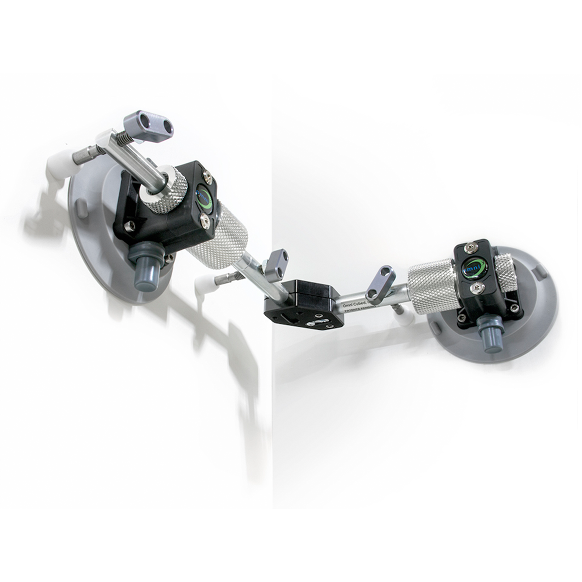 A készlet tartalmazza: 1 db derékszöges illesztés beállító 2 db 125 mm átmérőjű tapadókoronggal ellátva
