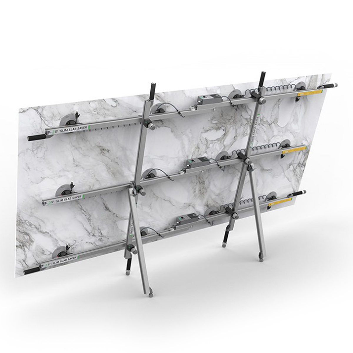 A készlet tartalmazza: 3 db állítható sín, 2 db 900mm hosszú keresztmerevítő, 2 db 1500mm hosszú keresztmerevítő, 4 db csatlakoztató a merevítőkhöz, 12 db 150 mm átmérőjű tapadókorong, 4 db átlagos fogó, 4 db fogó állítható talppal, kitámasztó készlet, 3 db akkumulátoros vákuumszivattyú